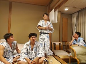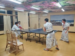 卓球を楽しんだ後は部屋で実習生の卒業送別会です🍻